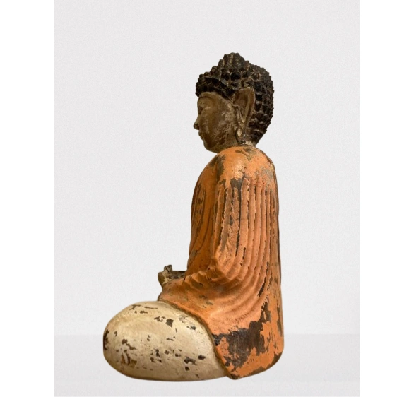 Discover peace and elegance with this handcrafted Buddha statue from Shaman Kathmandu. Featuring fine details, an orange robe, and a serene meditative expression, it brings harmony and spiritual charm to any space.